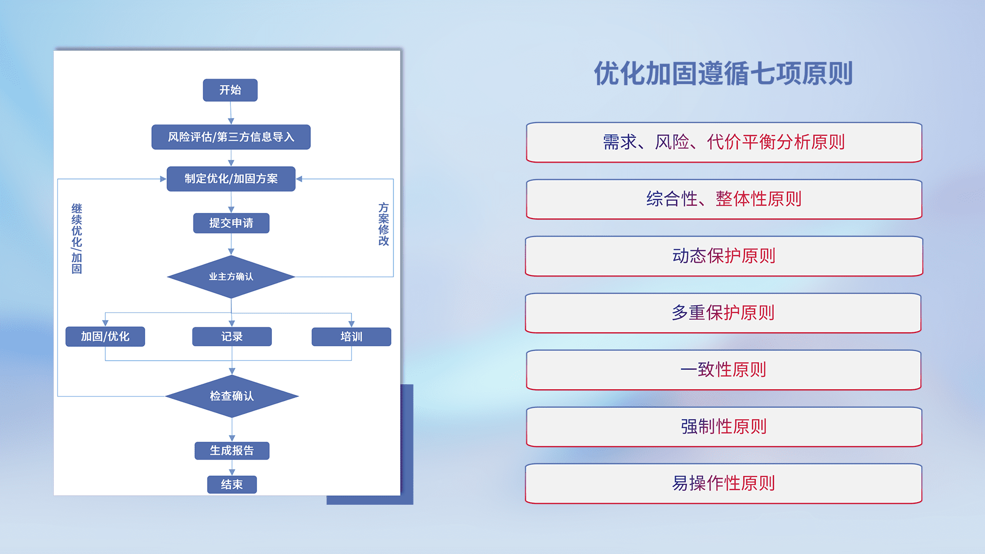 最大程度利用现有资产,,对评估发现的问题进行封堵与整改,,,,防止漏洞被利用,,提升整体网络安全性,,,,为客户带来高标准的优化加固服务。。。